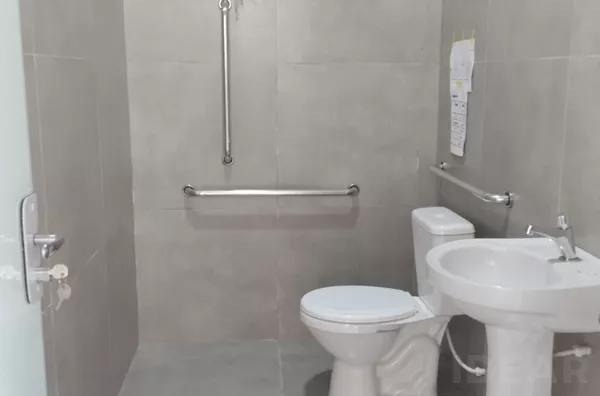 SALA AMPLA COM PÉ DIREITO ALTO, POSSUINDO 3 BANHEIROS E UM VESTIÁRIO.