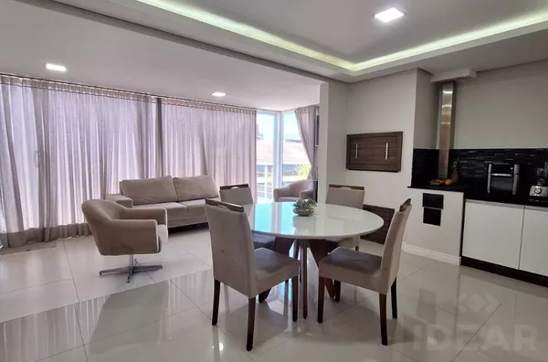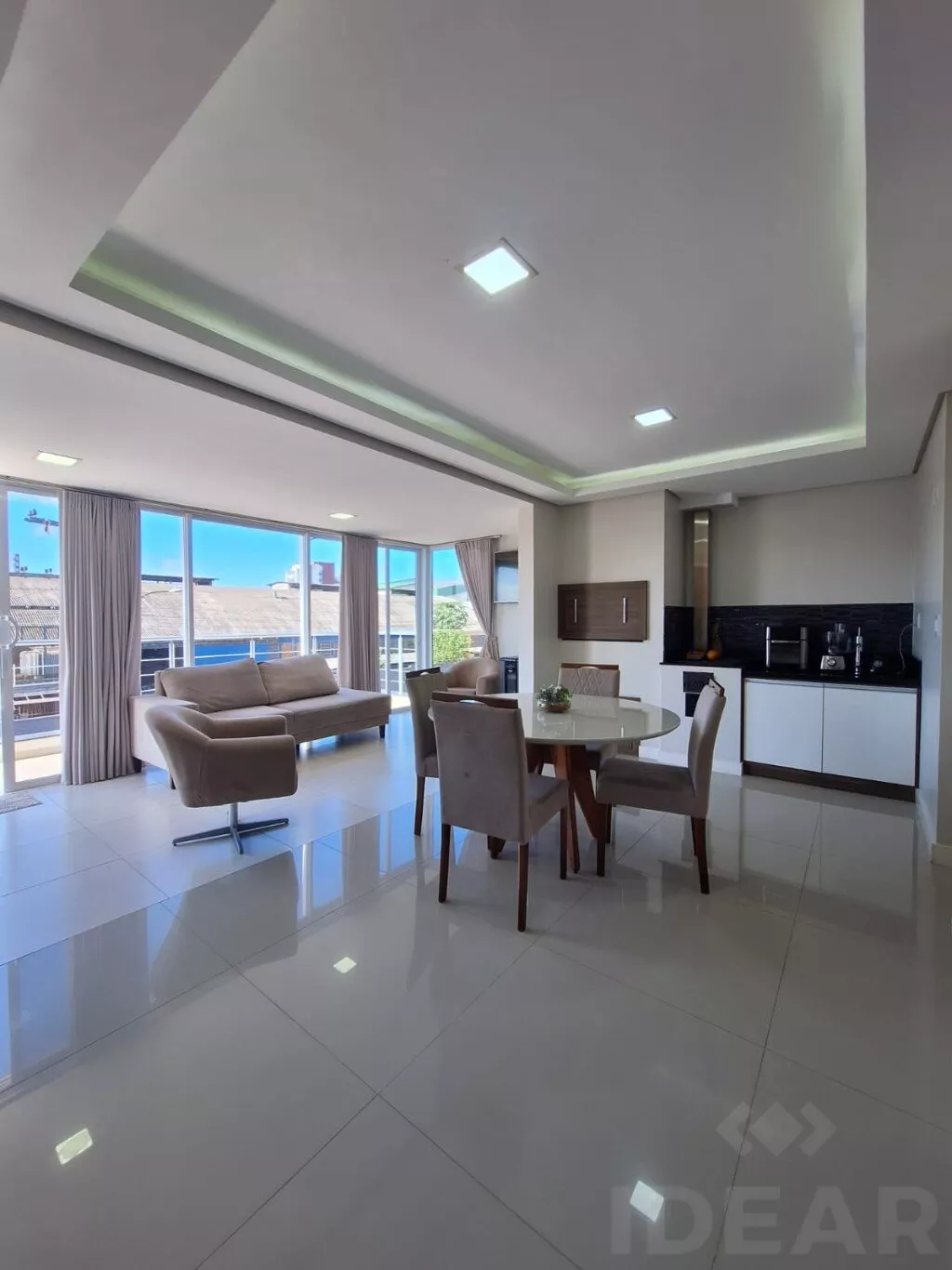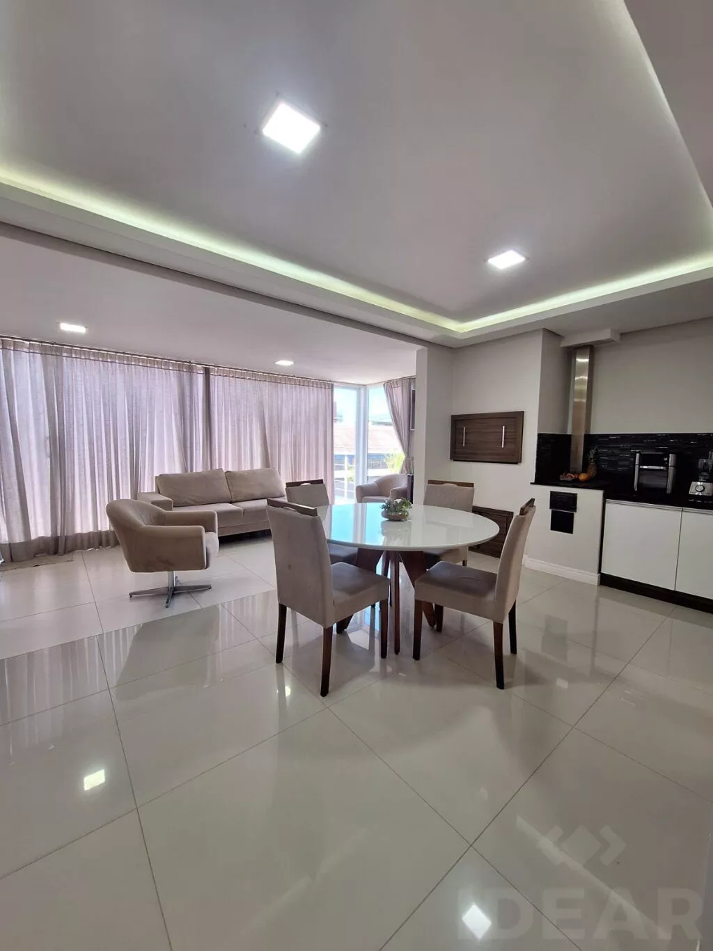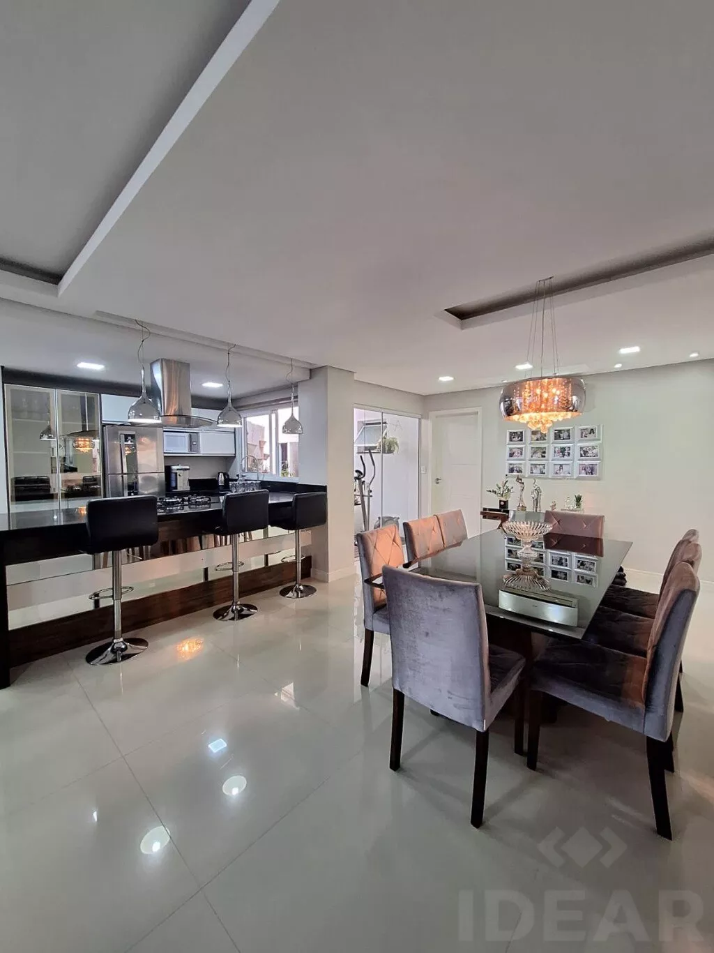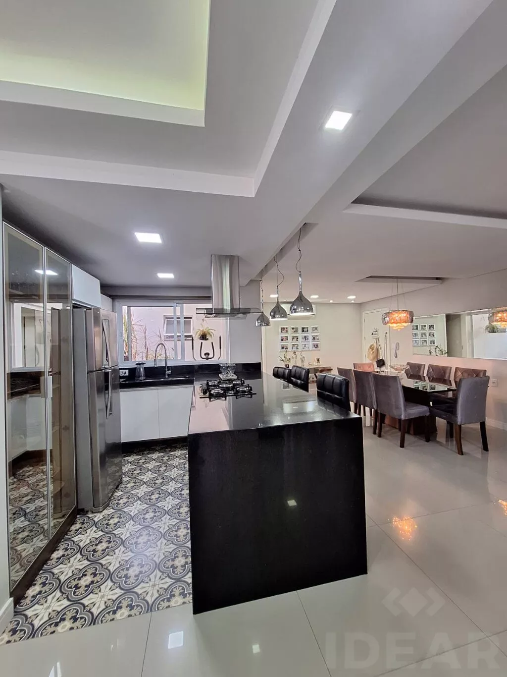 - COZINHA (armários planejado / cooktop / geladeira / sugar / micro-ondas / passa prato / cristaleira / banquetas / mesa com 8 cadeiras / aparador)