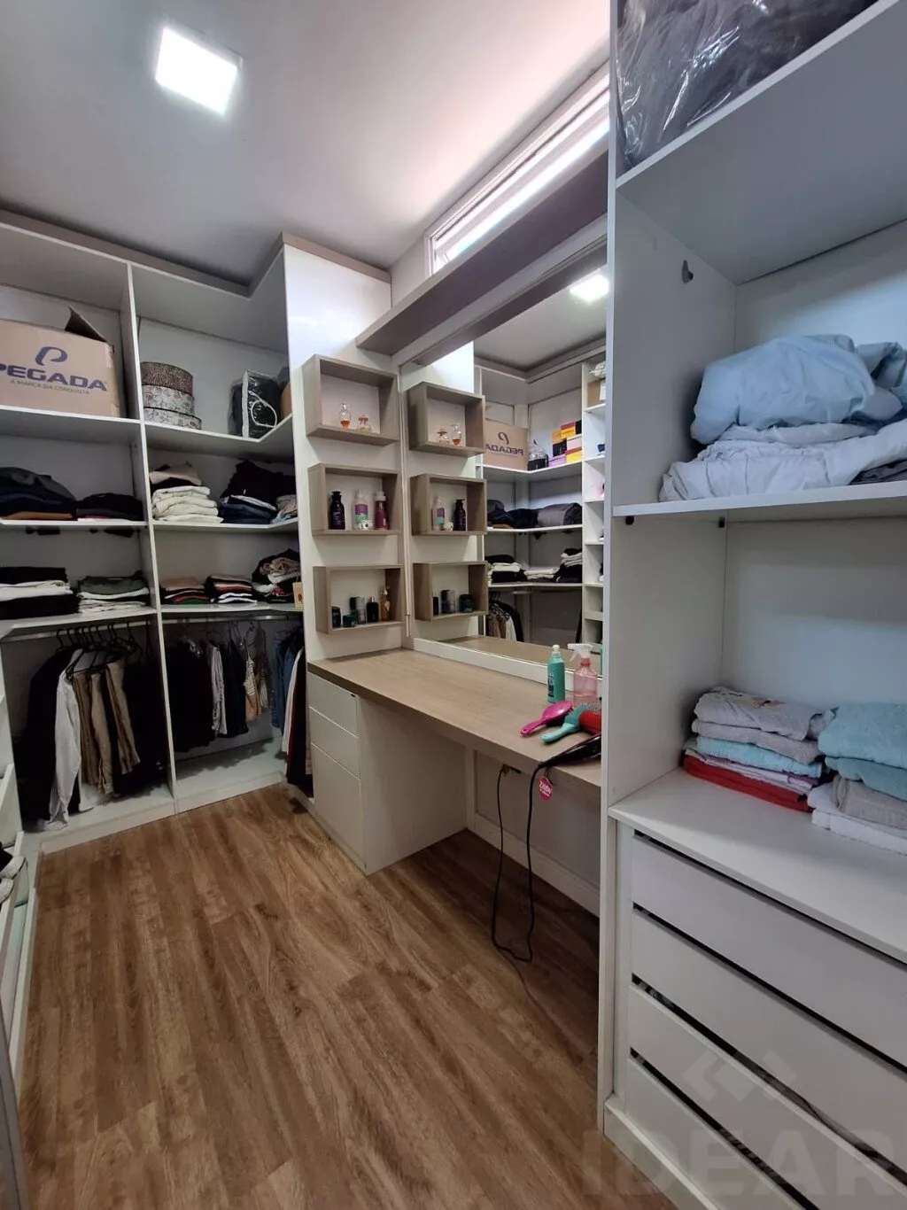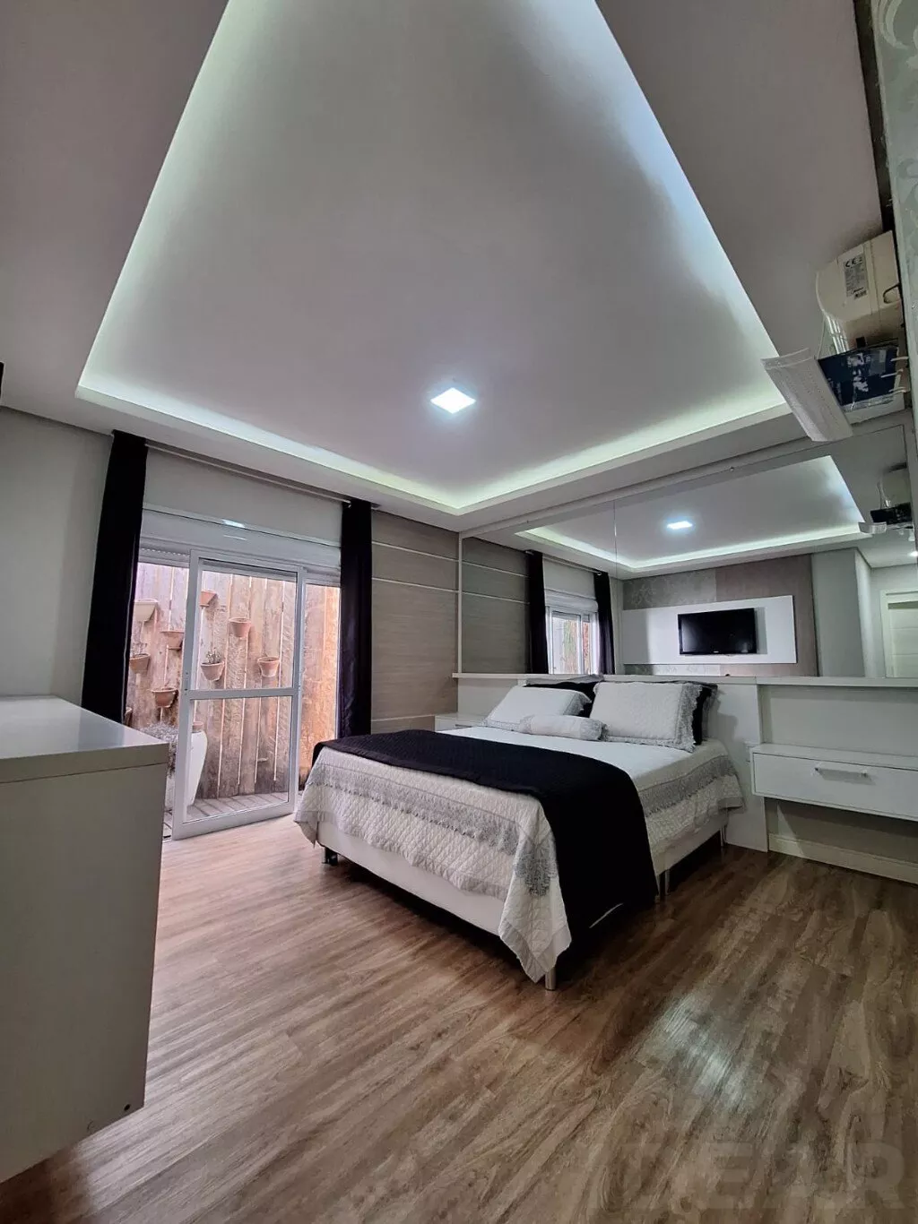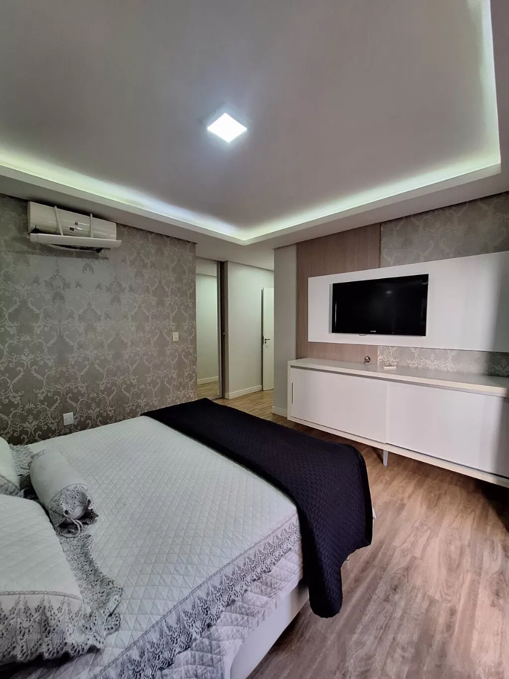 - DORMITÓRIO SUÍTE (cama de casal / split / armário sob medida / closet / banheiro)