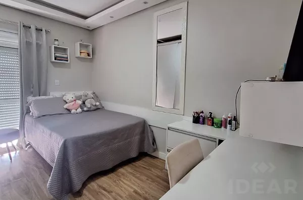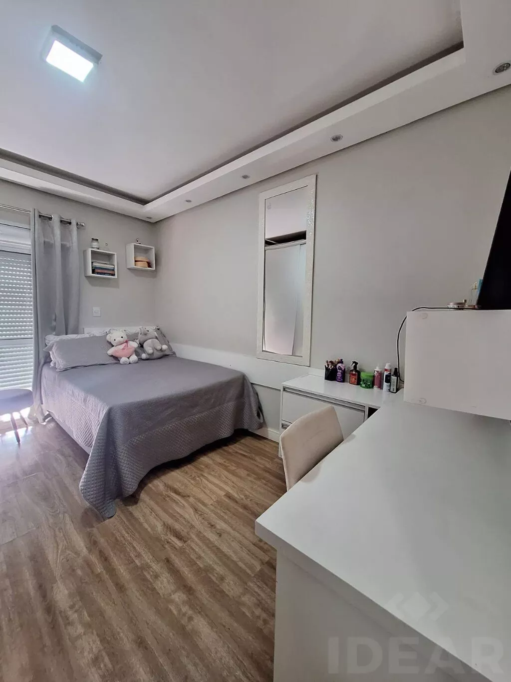 - DORMITÓRIO SOLTEIRO (roupeiro sob medida / split / escrivaninha / cama de casal / TV / sacada)