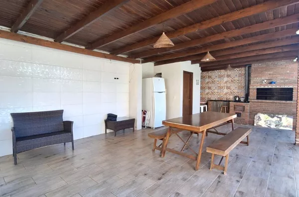 - SALA DE JANTAR (churrasqueira / fogão á lenha / mesa com 4 cadeiras / 2 poltronas / sofá / frigobar)
