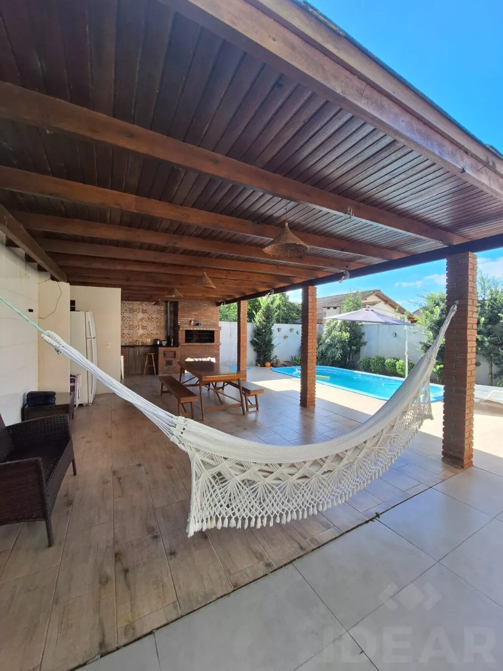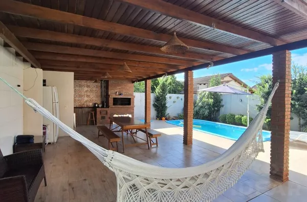 - QUIOSQUE: (piscina / mesa / churrasqueira / geladeira / fogão á lenha / armário de cozinha / banheiro)