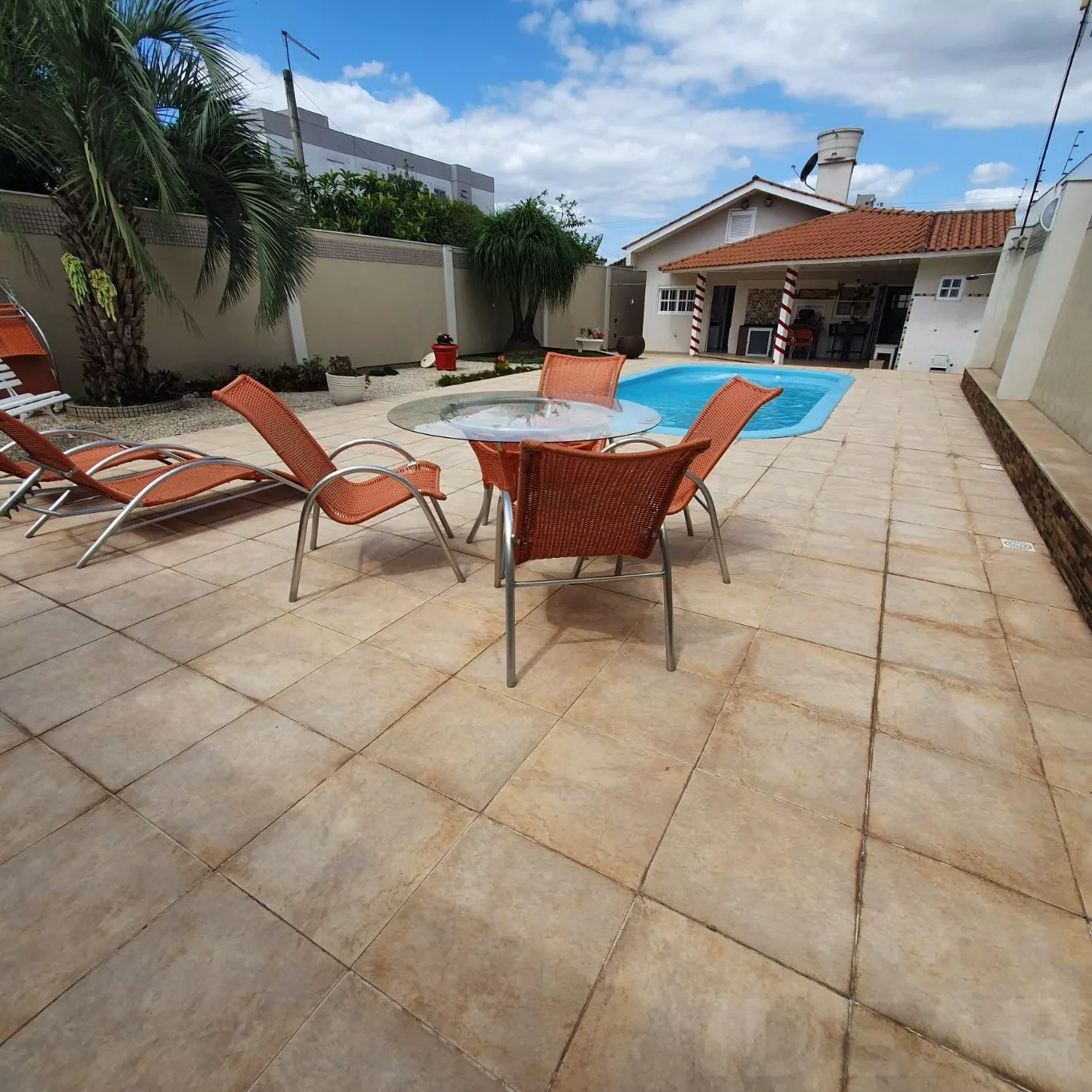 - UTENSÍLIOS DA PISCINA (cadeiras de banho e sol, mesa de vidro)