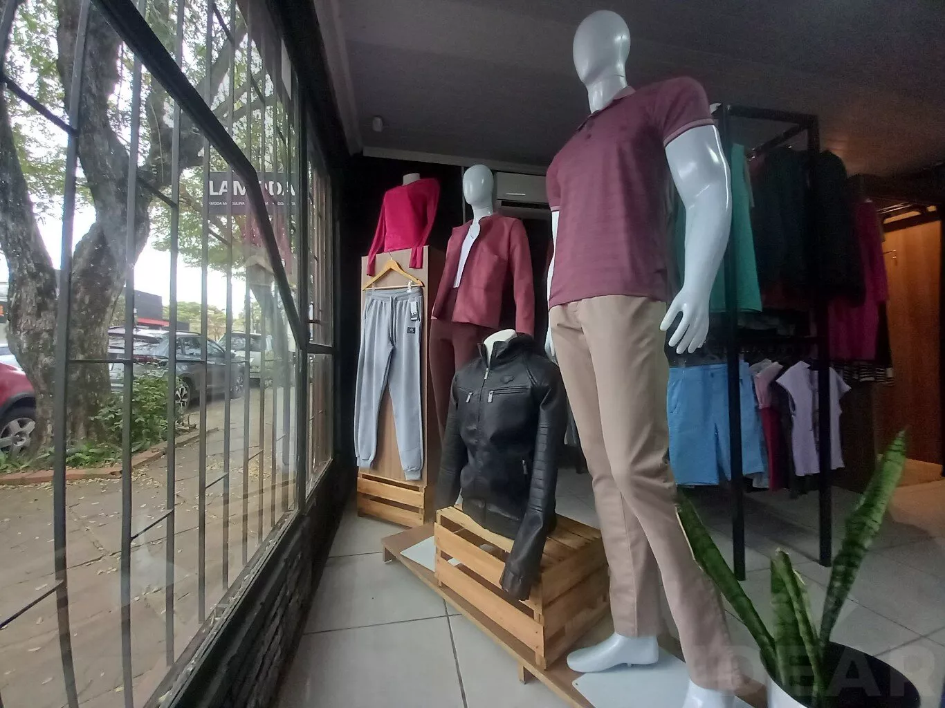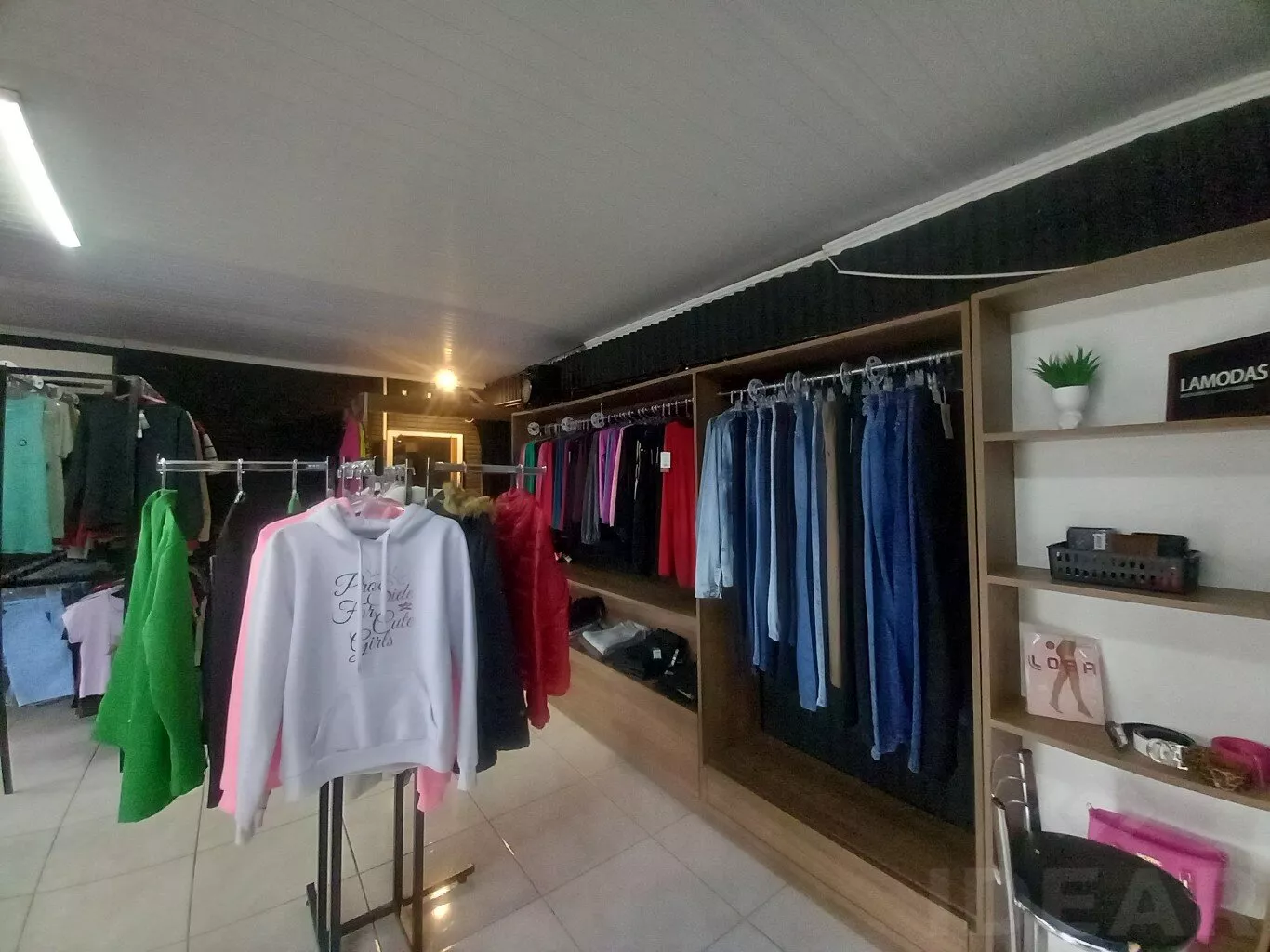 É uma loja que comercializa artigos femininos e masculinos