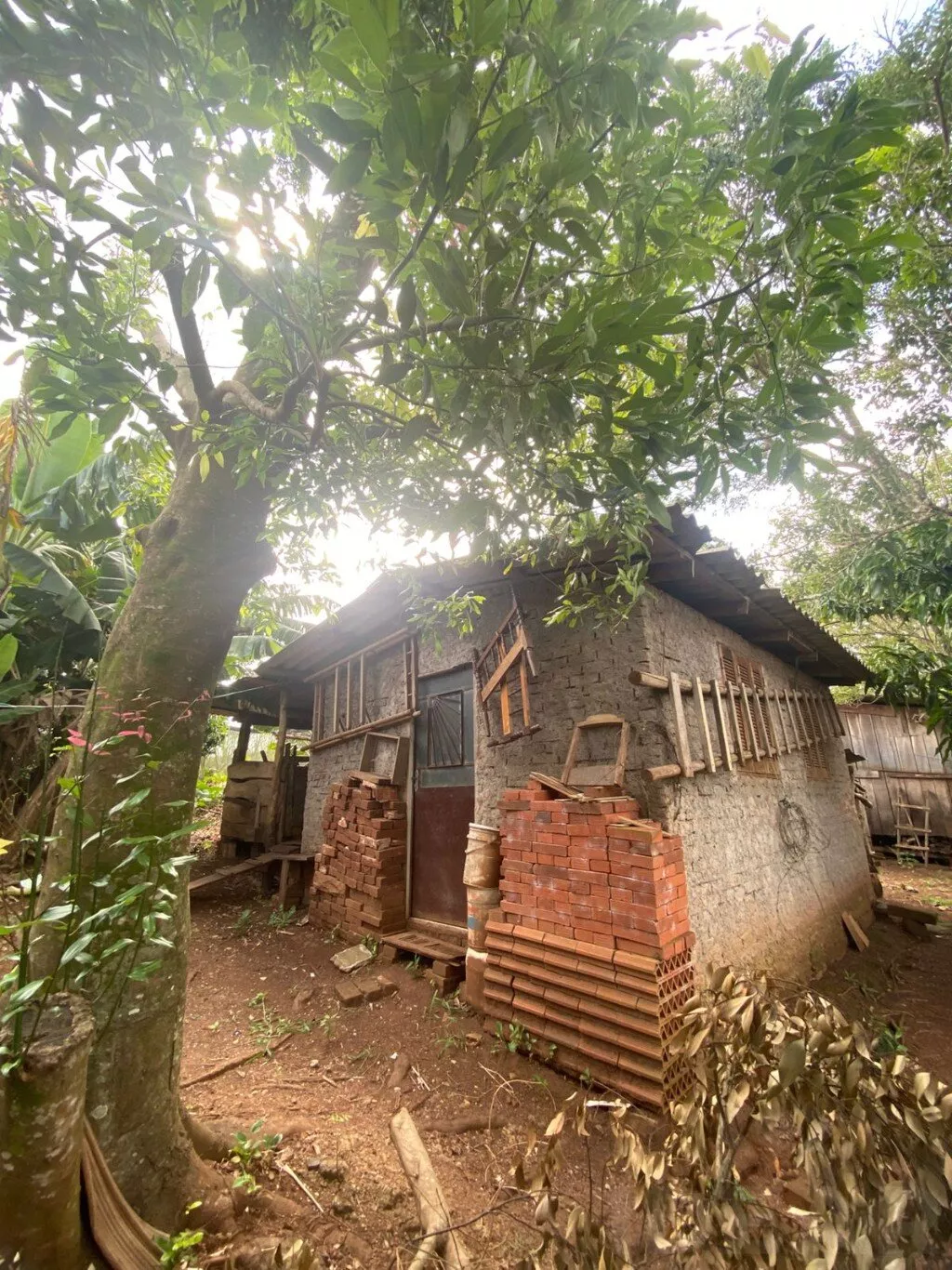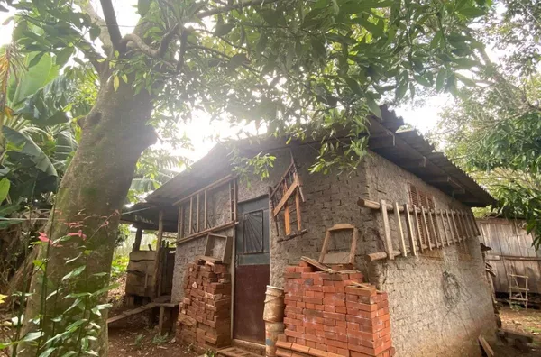 CASA COM TELHA CONCRETO PLANO, PISO CERÂMICO e ABERTURAS EME MADEIRA