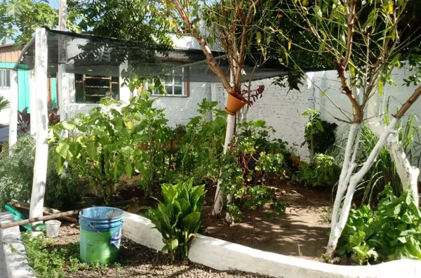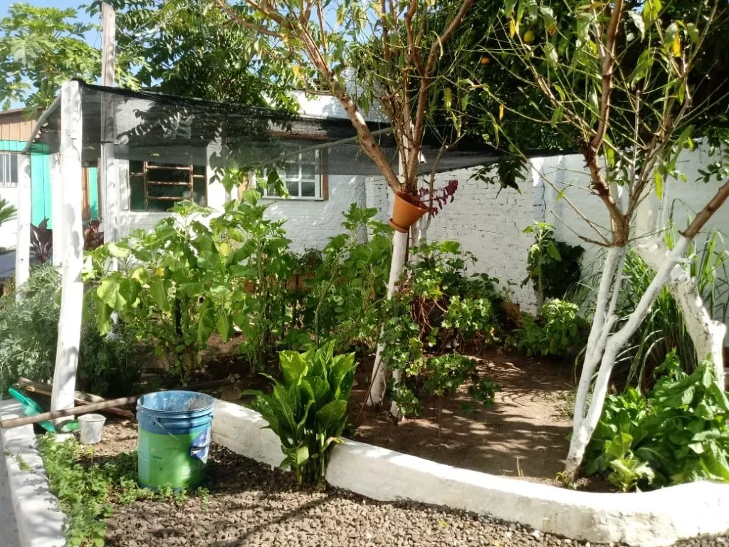 Na casa principal tem um poço que a proprietária usa para lavar as calçadas e molhar as plantas